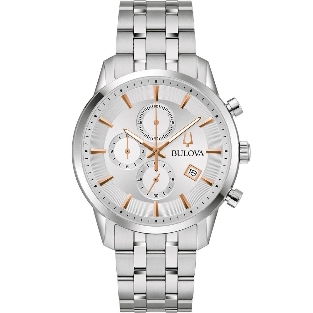 Paired perfectly with a matching silver-tone stainless steel deployant clasp bracelet, the 96B411 offers both style and ease of wear. The watch is splashproof, suitable for daily activities and light water exposure. Combining sophistication with practicality, this Bulova timepiece from the Sutton Collection is ideal for those seeking a versatile and reliable chronograph for everyday wear.