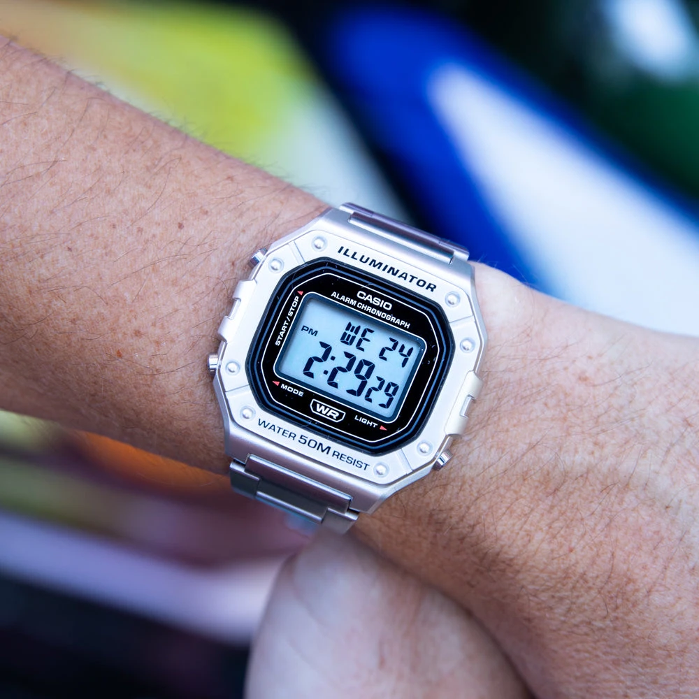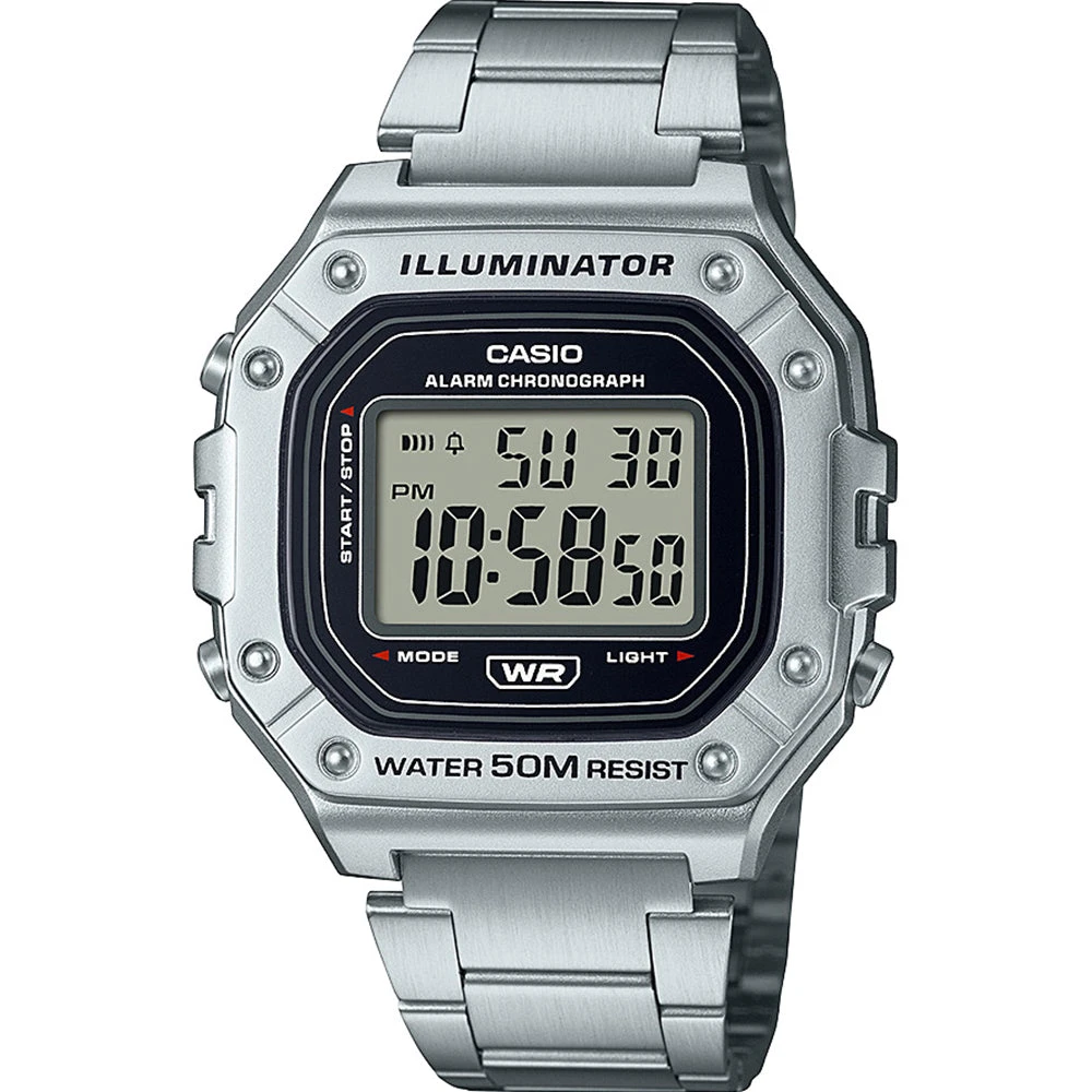 Experience the timeless appeal of the classic square-faced digital watch, now with a sleek metal finish. Embrace your passion for technology with a casually stylish touch of metallic sophistication. Its versatility seamlessly complements your style, whether you’re on duty or enjoying leisure time. Beyond its stylish appearance, this watch offers a multitude of functions typical of digital timepieces, including a 1/100 stopwatch, alarm, and calendar. With features like 50-meter water resistance and an LED light, it ensures clear visibility in any lighting condition, making it both fashionable and functional.
