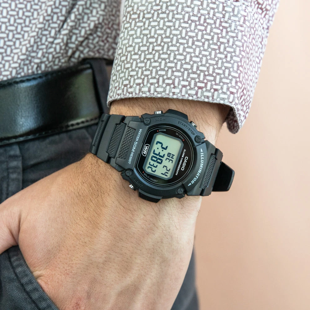 Introducing the Casio W219H-1 Sports Digital Watch, a robust timepiece designed for everyday wear. With its heavy-duty round digital design, this watch is built to withstand the rigors of daily life. Featuring an LED light, it ensures visibility even in low-light conditions. With 50-meter water resistance, it’s suitable for water-related activities. The watch includes practical features such as an alarm, 1/100th second stopwatch, and a daily alarm, making it highly functional for various tasks. Powered by a CR2016 battery, it offers a remarkable battery life of up to 7 years, ensuring long-lasting performance. The black resin band and case paired with a black/neutral face give it a sleek and versatile look. Additional features include an auto-calendar, accuracy of ±30 seconds per month, and regular timekeeping functions such as hour, minute, second, PM, date, and day displays.