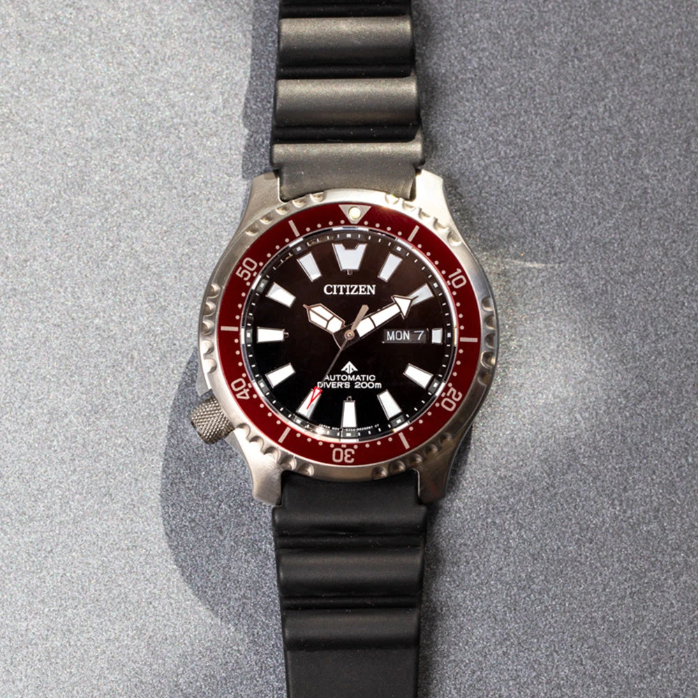 A timeless classic always remains in vogue. The freshly reimagined Promaster Dive Automatic men’s watch by Citizen delves deeply into the historical roots of its original iteration from 1989, tailored for a new wave of dive watch enthusiasts. Crafted in silver-tone stainless steel, it features a standout design element: the unique serrated bezel, inspired by the Japanese pufferfish, known as “Fugu.” Boasting a 3-piece, 44mm case and anti-reflective sapphire crystal, this timepiece also boasts a silver-tone stainless steel case and bracelet. The easy-grip aluminum ring encircles the dial, luminous hands, and markers, while the case back proudly displays an engraving of a fugu or pufferfish. This technically advanced and stylish men’s sports watch harnesses the motion of the wearer’s wrist, adhering to ISO standards with a screw-down crown and offering water resistance up to 200 meters. It houses the caliber 8204.