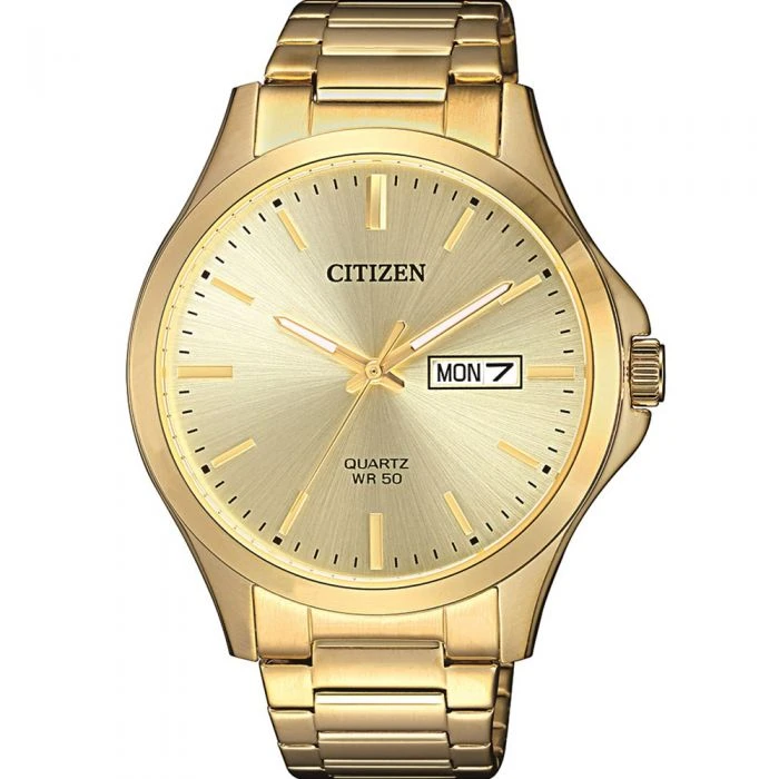 Combining striking aesthetics with exceptional functionality, this watch sets a stylish benchmark for practical accessories with its rich gold tones. Crafted from durable mineral glass and stainless-steel featuring gold plating for added resilience, it also offers WR50/5bar water resistance, and day/date display. Moreover, with its gold-toned band, case, and bezel complemented by the tasteful matte gold finish of the face, it exudes a timeless statement of classic refinement.
