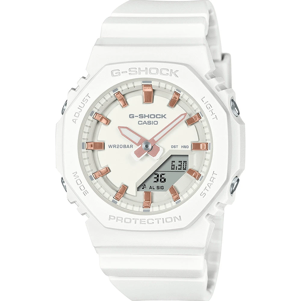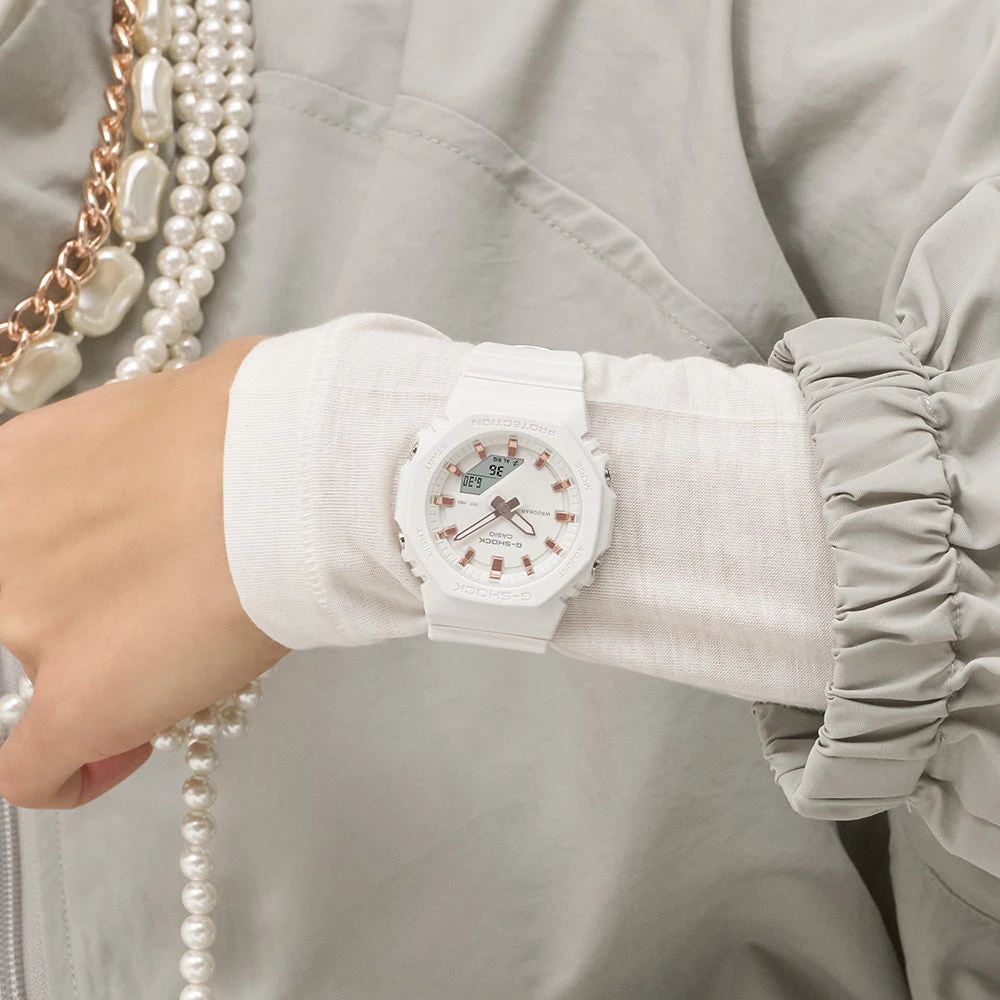 Explore three elegant new colour variations of the popular GMA-P2100 analog-digital model, each featuring pink-gold vapor-deposited hour markers that add a radiant, refined touch.