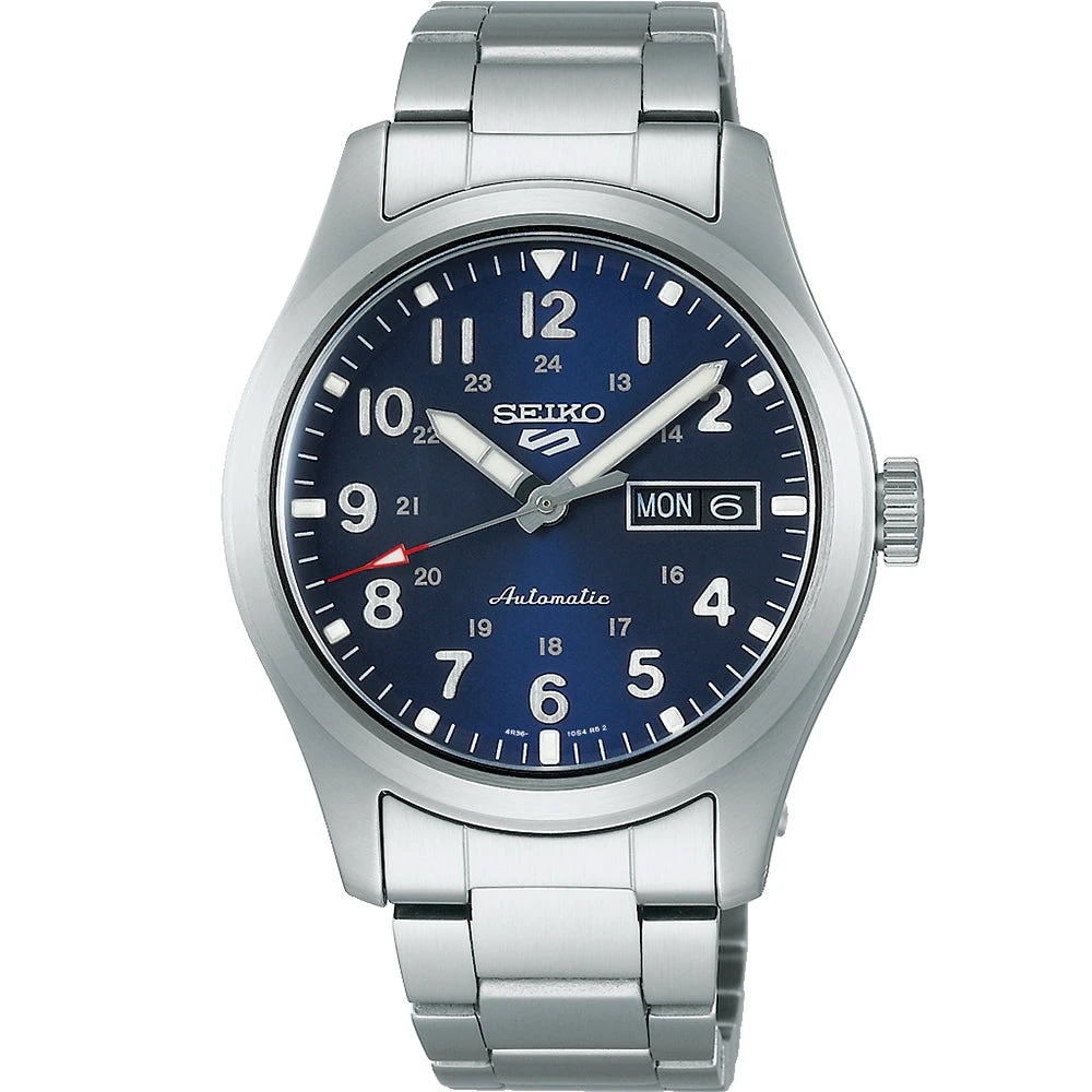 The Seiko 5 Sports Men’s Stainless-Steel Case and Bracelet Automatic Movement Watch, model SRPG29K1. This timepiece boasts a classic aesthetic with the renowned Seiko finish, seamlessly blending form and function.