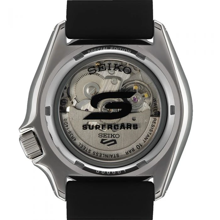 Presented in a special presentation box adorned with the iconic Supercars logo, the menβs automatic watch SRPJ97K features the logo on the crown as well as on the exhibition case back.