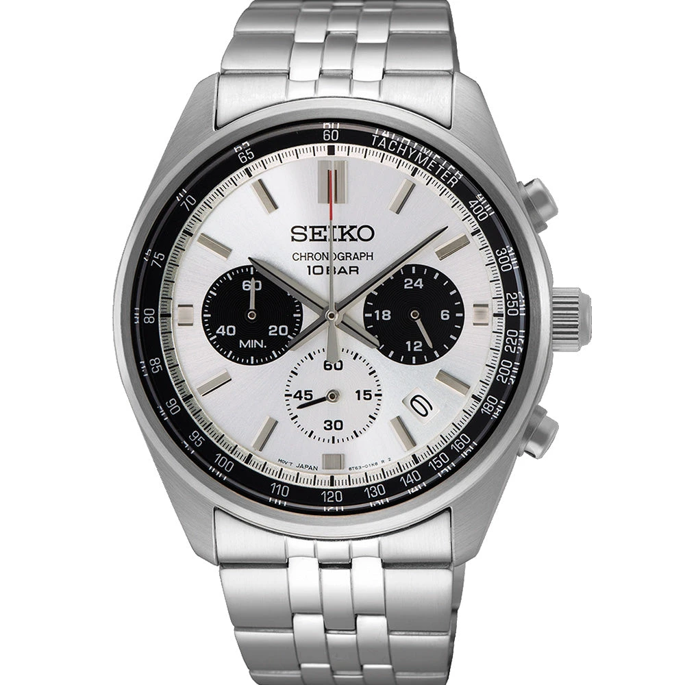 Introducing the Seiko SSB425P dress watch, boasting an exquisite analogue silver dial housed within a 40mm diameter, 12mm thick case. This timepiece offers a range of features including a chronograph, 24hr Sub Dial, hardlex crystal glass, push/pull Crown, luminous hands, and water resistance up to 100 meters. With a fully adjustable stainless-steel bracelet, the SSB425P ensures both style and comfort. Complete with its own Seiko gift box, it makes for the perfect present.