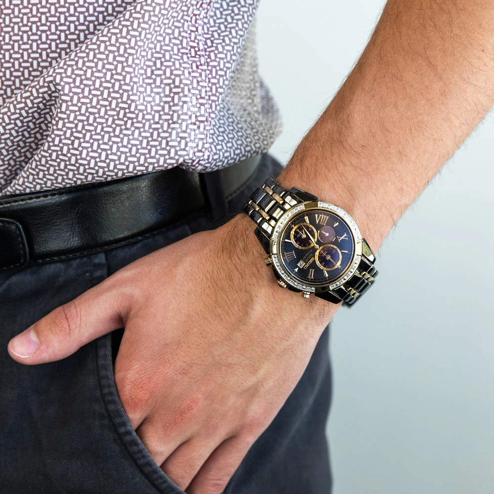 The Seiko SSC314P9 Le Grand Sport Solar Diamond Set Gents Watch is a modern piece with the reliability of a classic. From the Le Grand Sport Collection, the black stainless-steel casing, bracelet, and diamond-set bezel adds a luxurious look. The sleek textured charcoal dial features three sub dials, including an alarm, stopwatch and dual time, and a date window, making the solar and chronograph piece the perfect dress and everyday watch.
